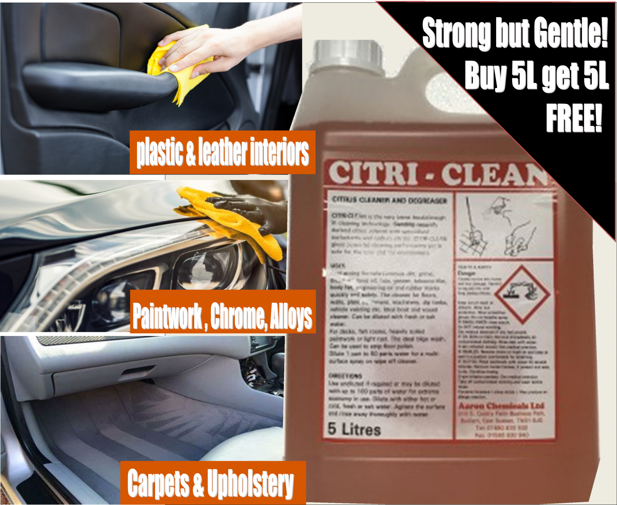 For cleaning paint work ,Citri Clean is ideal for removing squashed flies on bonnets. Citri Clean will effectively clean the dirtiest upholstery and carpets.