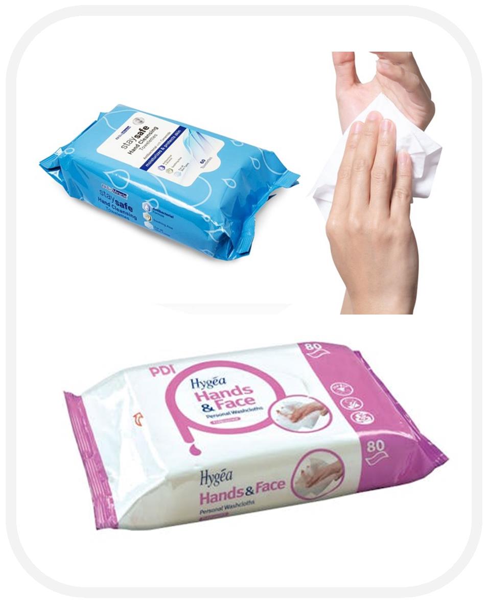 Hand cleaning wipes for cleaning hands whilst on the go.