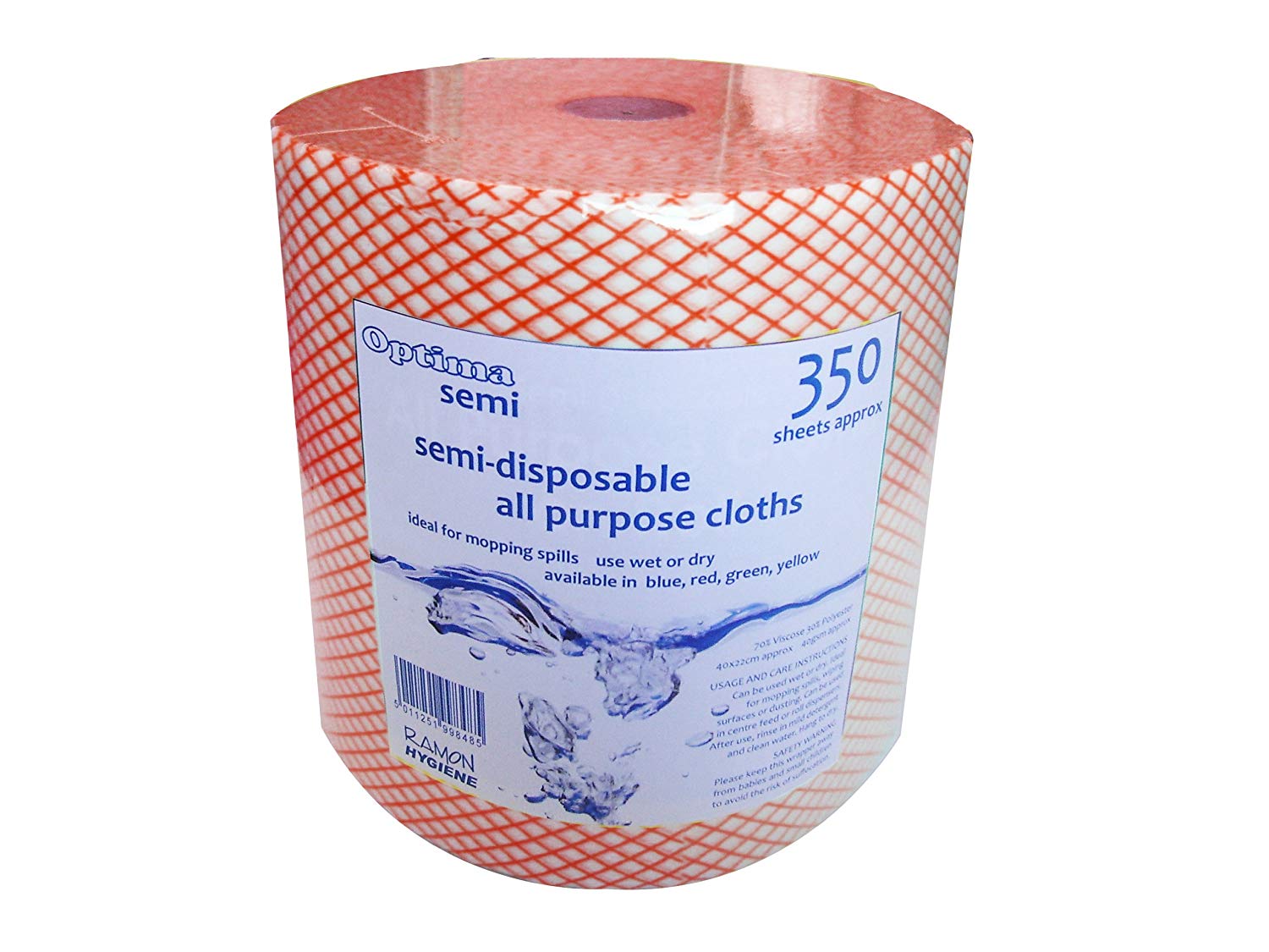Giant, 350 sheets, J cloth on a roll. Very handy for spills and general cleaning. Available in red, blue, green and yellow.